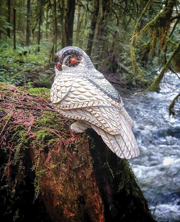 Richard soon became hooked on woodcarving and started making designs of his own. One day, a finished bird sculpture developed a deep split after being left out in the sun. Instead of discarding it, Richard covered the crack with metal feathers. “It was a happy accident in hindsight,” he said. |