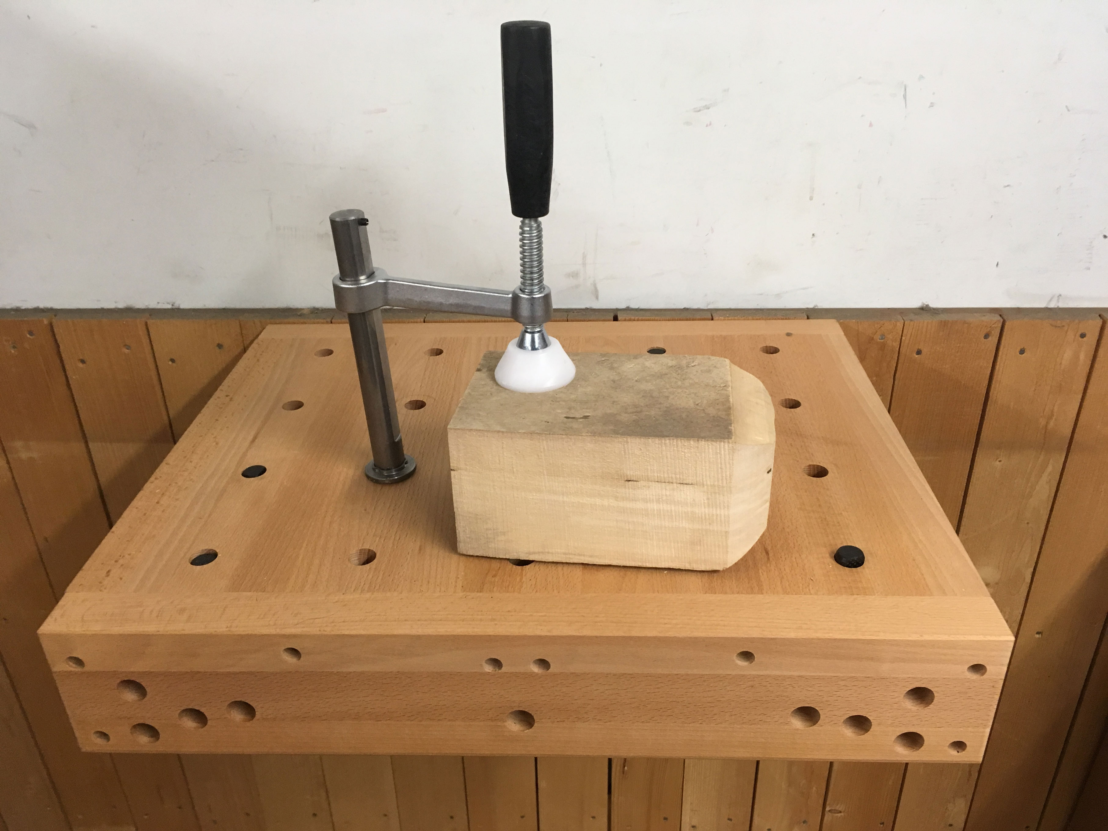 While many carvers work in their lap or on a tabletop, some projects call for clamping. Enter the Sjobergs Elite Clamping Platform. Paired with the right accessories, its all-over pattern of dog holes lets you clamp any carving—even irregular shapes.
